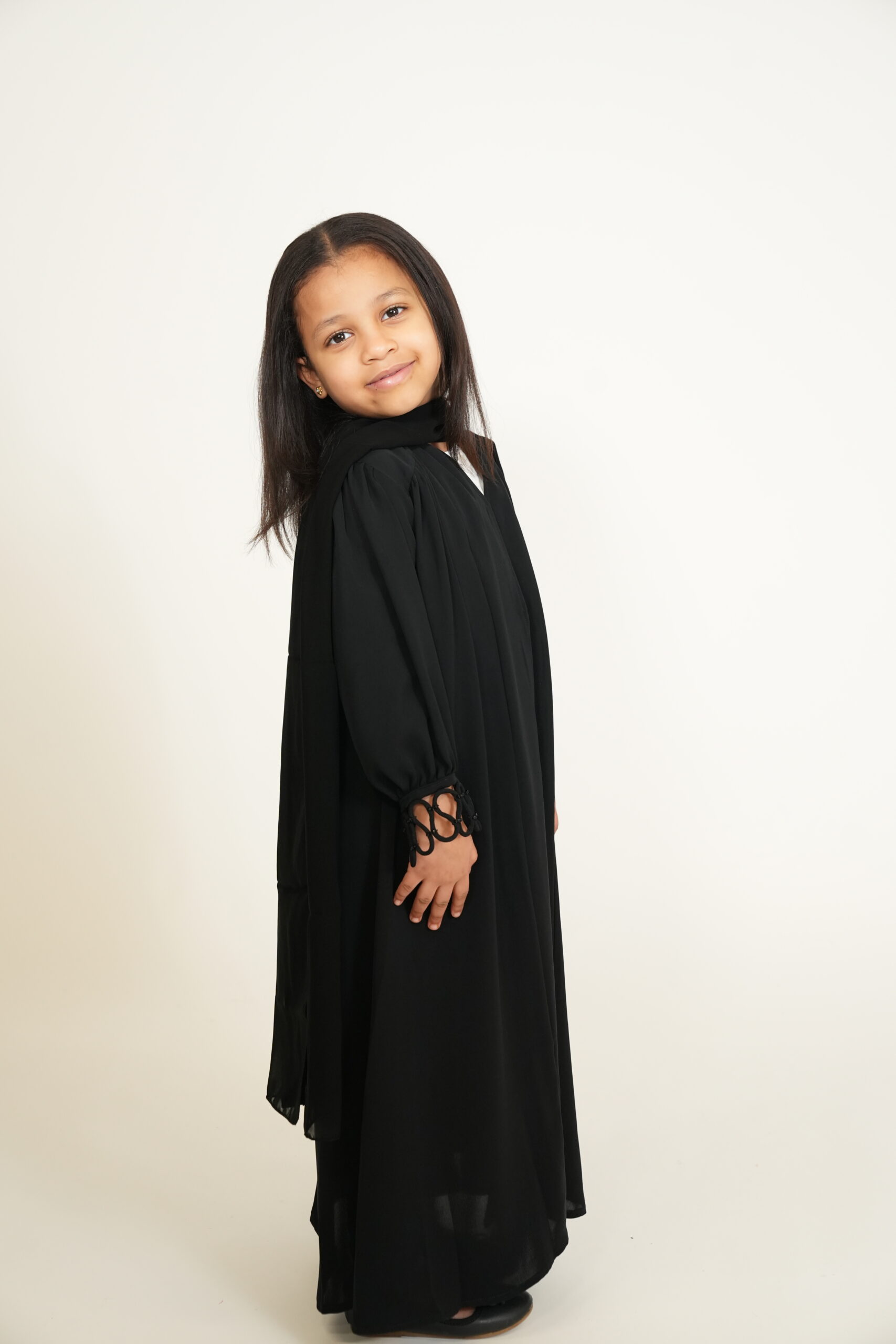 You can never go wrong with a classy staple abayah and this is the ultimate one” This abayah comes with the most intricate sleeve detailing that truly makes this piece one of a kind! Also available in matching adults sizes.